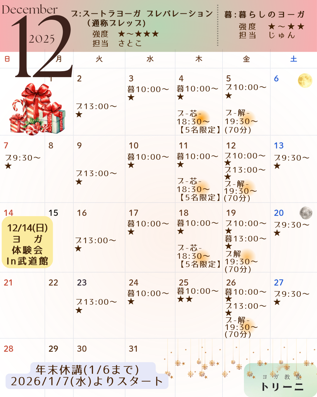 12月のスケジュールと、ニューイヤー感
