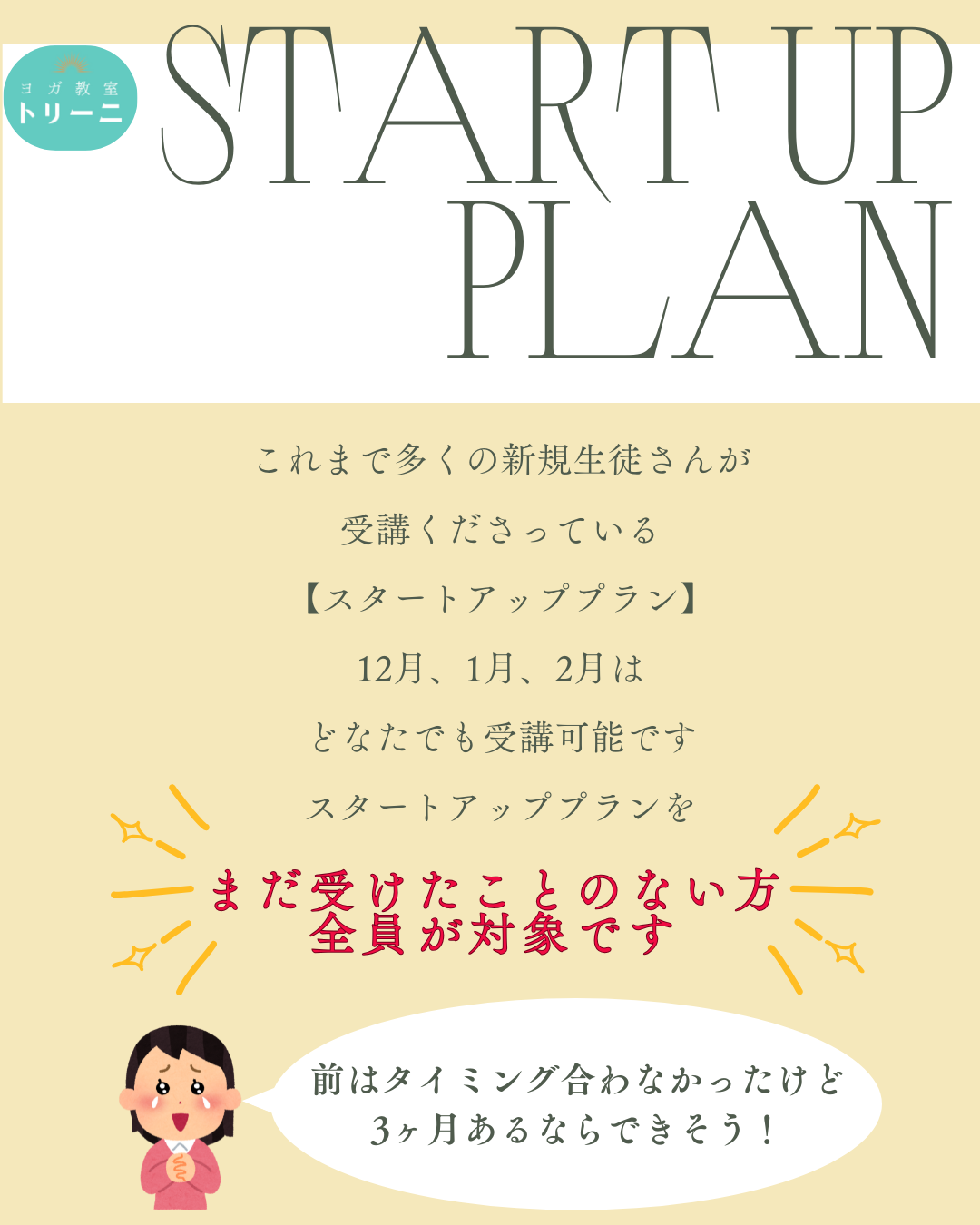 【3ヶ月限定】全員受けられる!スタートアッププラン | 千歳のヨガ教室ならトリーニ