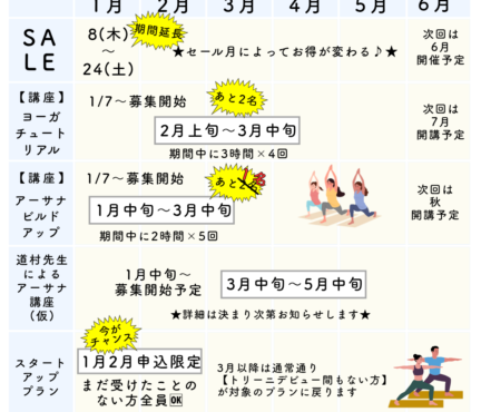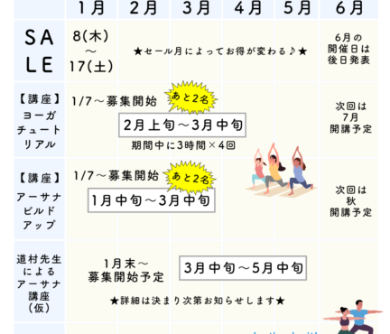 新着情報 News・Blog 2026年1月13日 News 無事終了!武道館レッスン〜ヨガの男女差とは?〜 2026年1月11日 News 近況報告 2026年1月8日 News レッスン時間が変わります 2026年1月8日 News 募集が始まりました!【改定版】トリーニ上半期 2026年1月8日 News ウインターセール開催!【1/24(土)まで】 2026年1月6日 News トリーニの上半期 2026年1月5日 News 遅いご挨拶とお正月にあったこと 2025年12月27日 News 年末年始だから作れる時間 2025年12月26日 News 好きな色 2025年12月25日 News 年に数回、覚醒する夫 1 2 オンライン予約 ホーム 初めての方へ/講師紹介 プログラム紹介+ レッスン/パーソナルレッスン スタートアッププラン ヨーガ・チュートリアル アーサナ・ビルドアップ - カレンダー 料金 ご予約・お問い合わせ 新着情報 090-1302-3033 火曜日~日曜日 / 8:00~20:00(月曜日定休) ×