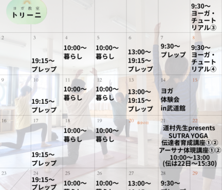 新着情報 News・Blog 2026年2月25日 News 3月は! 2026年2月23日 News 【2/28(土)まで】気になる方はぜひご利用ください! 2026年2月16日 News あと33 日?!【アーサナ体現講座】残席カウントダウン 2026年2月15日 News 2/14ヨーガ体験会レポ♪ 2026年2月9日 News 遠慮も謙遜も迷いも損?!【アーサナ体現講座】のご案内♪ 2026年2月8日 News 1回目終了、ヨーガ・チュートリアル 2026年2月4日 News 春の音 2026年2月3日 News 【正式日程】ヨーガ・チュートリアル/【人数限定】お試し参加 2026年2月1日 News ヨガマット入荷しました 2026年1月28日 News 【ヨーガ・チュートリアル】お試し版と募集のおはなし 1 2 オンライン予約 ホーム 初めての方へ/講師紹介 プログラム紹介+ レッスン/パーソナルレッスン スタートアッププラン ヨーガ・チュートリアル アーサナ・ビルドアップ - カレンダー 料金 ご予約・お問い合わせ 新着情報 090-1302-3033 火曜日~日曜日 / 8:00~20:00(月曜日定休) ×